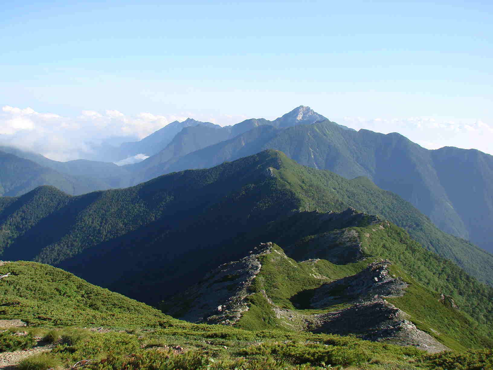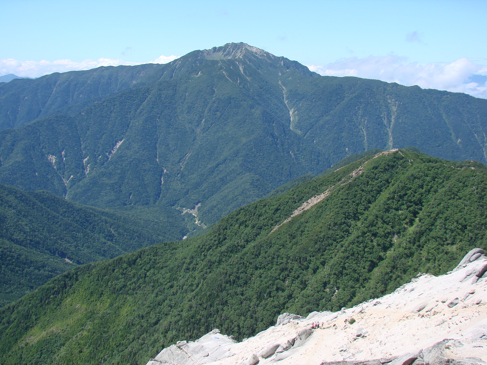 前日に登った駒ヶ岳山頂から見た仙丈ヶ岳