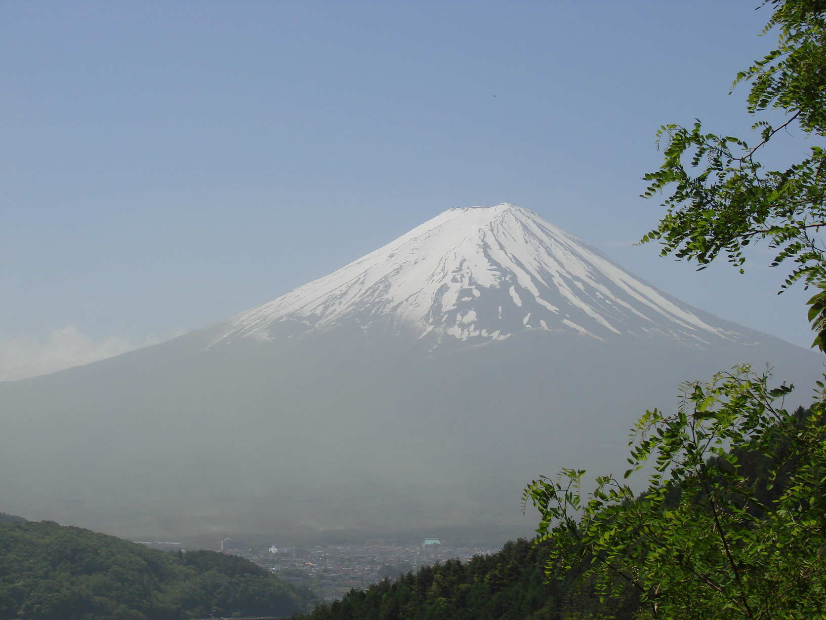 若葉と霞む富士山