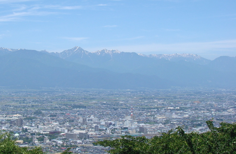 6月の北アルプス 常念の横にチラッとやりも見えています。松本より