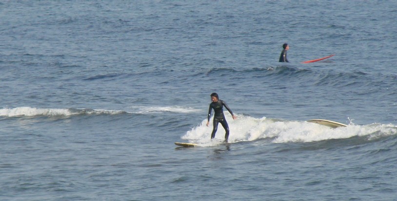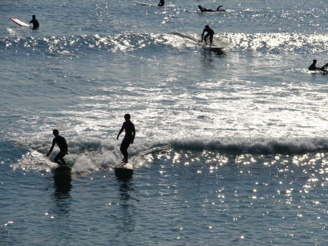 湘南の海 夕日の輝く海でサーファーが・・・私もやってみたい・・・