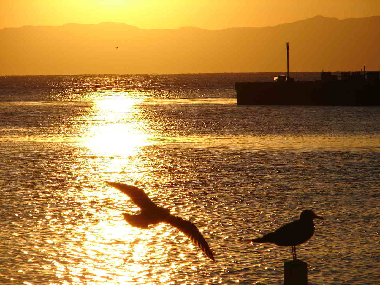 江の島の夕日 海全体が輝いて・・・・声が出ない