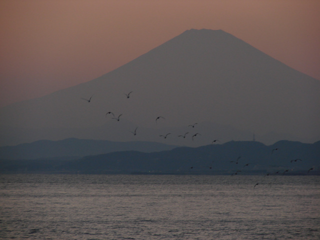 夕暮れの江ノ島からの富士山(右)