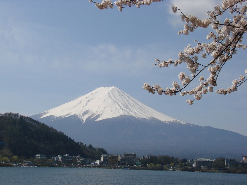 河口湖からの春の富士山