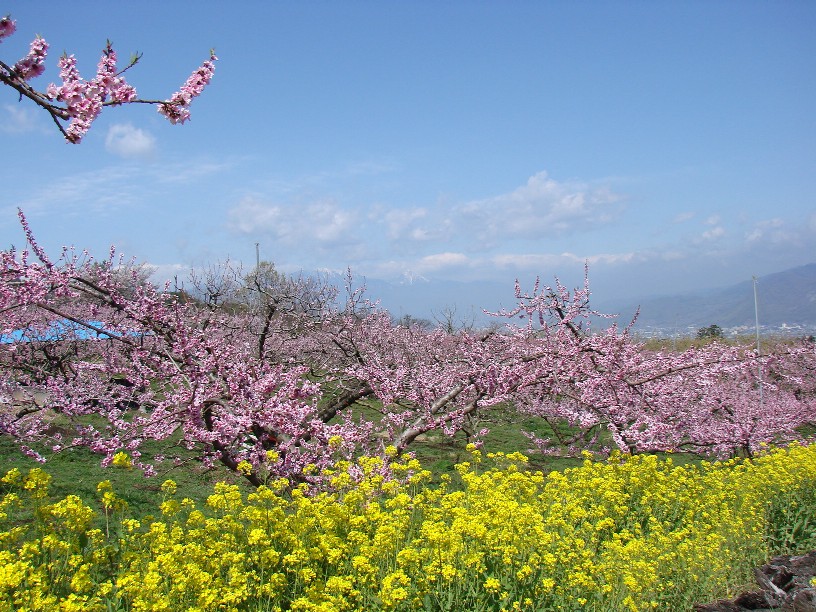 山梨の桃畑 後ろに見えるのは南アルプス^^